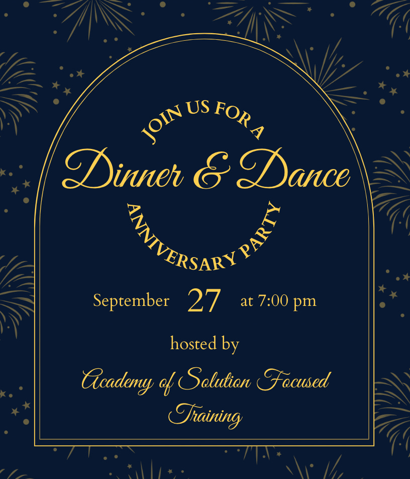 All of us at the Academy of Solution Focused Training are looking forward to a special time of live, in-person interactions around one of our favorite subjects - the Solution Focused Approach. Our best hope is to see you there as we all learn together.
