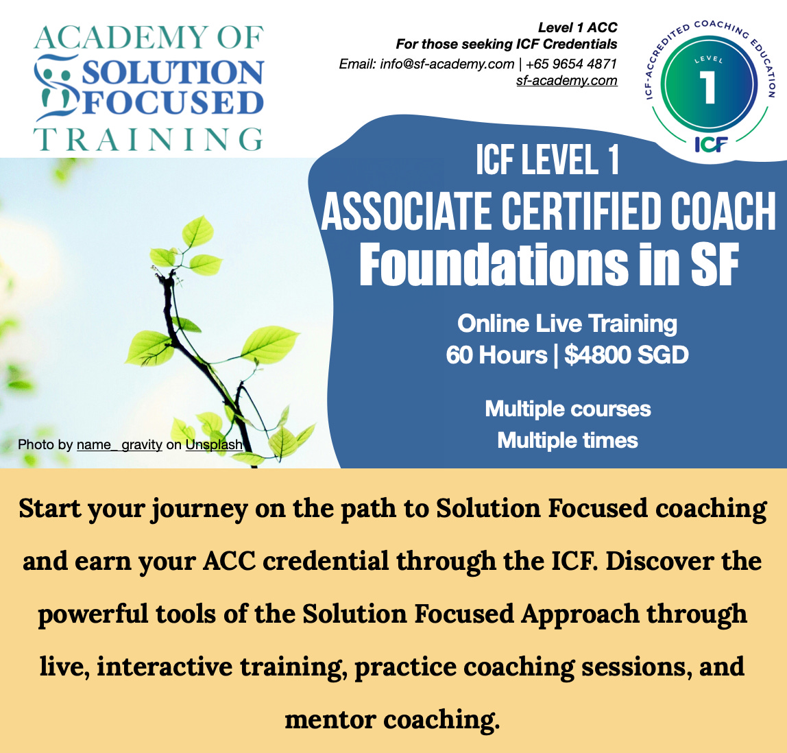 Level 1 Coach Training starts in July with all you need to know to be a Solution Focused certified coach!